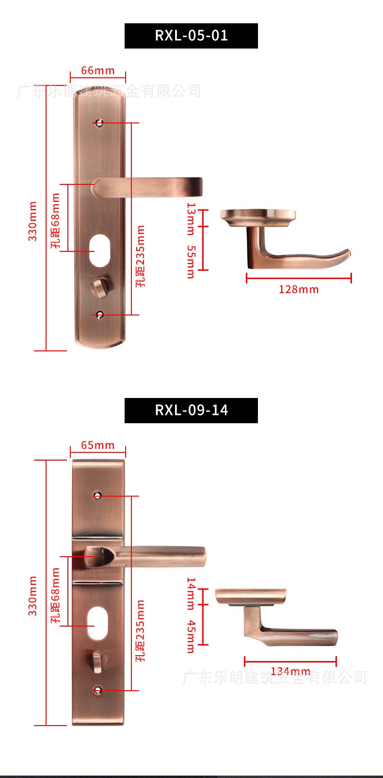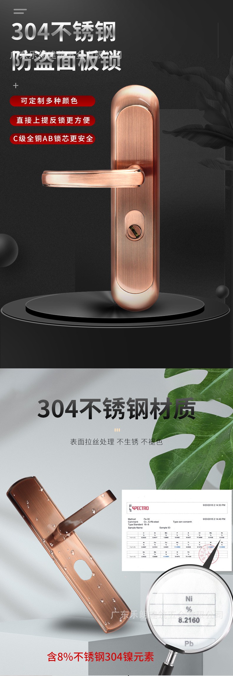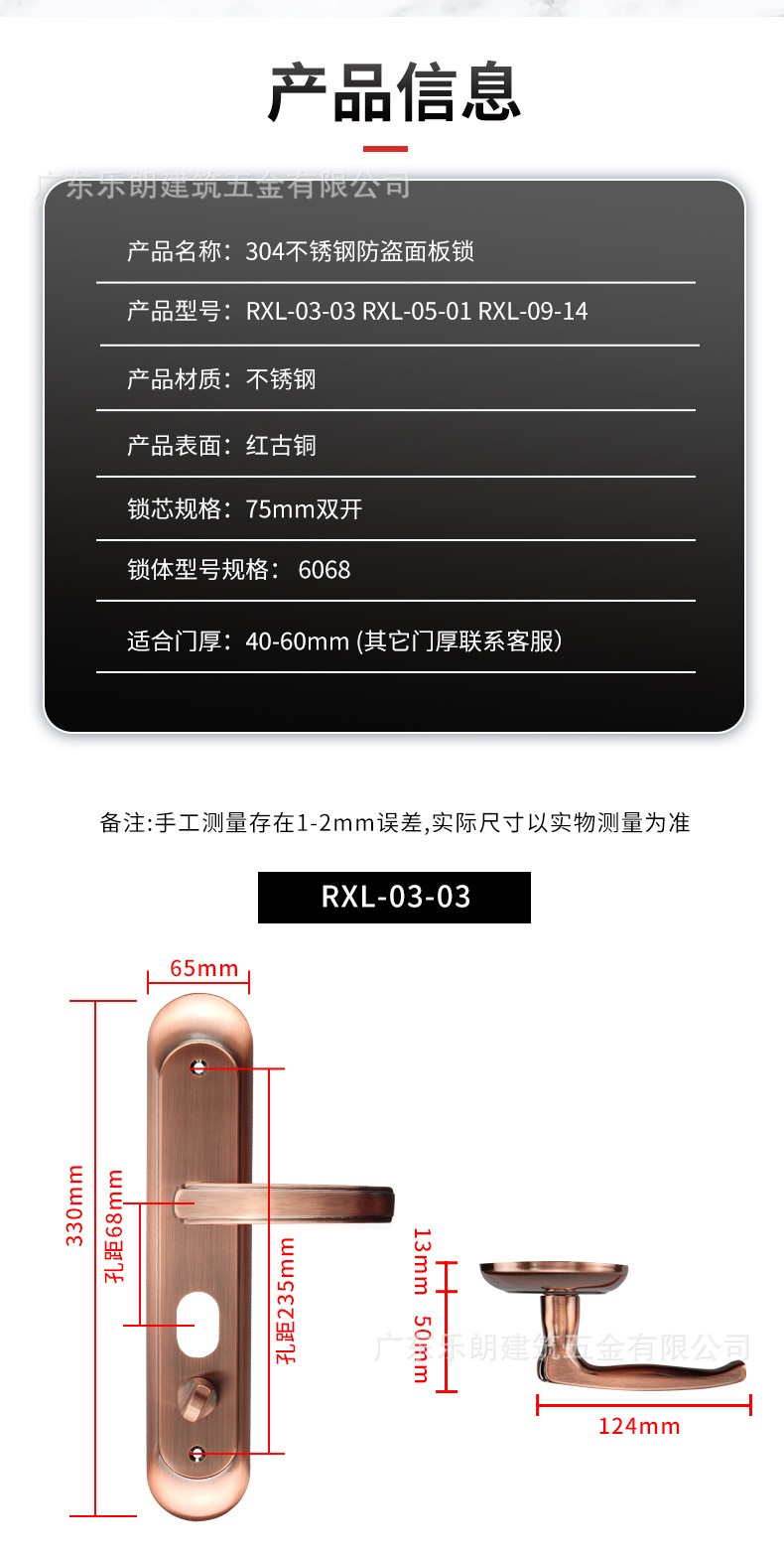 RXL-03-03 紅古銅不銹鋼304入戶防盜面板鎖
